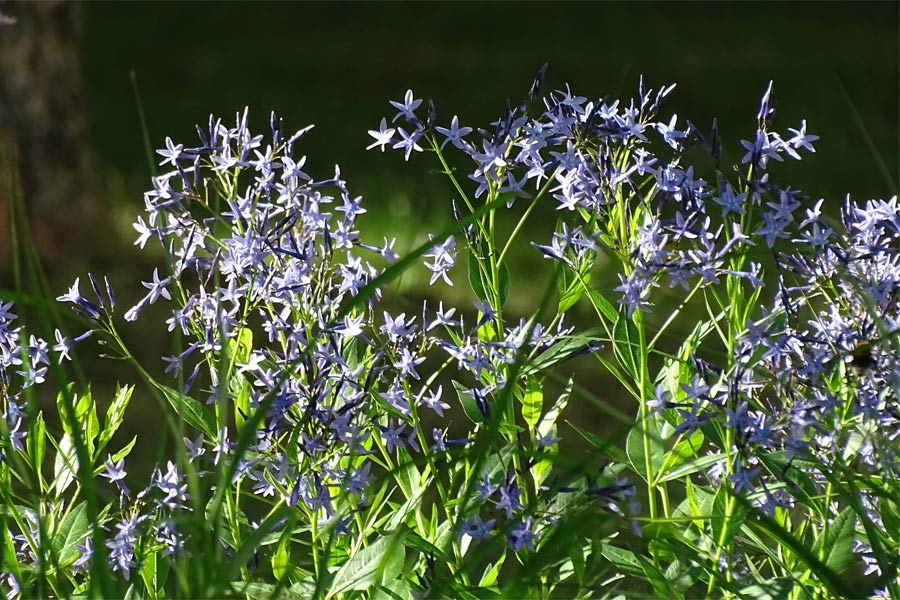 Wunderschön, das sind die verschiedenen Amsonia-Arten tatsächlich mit ihren je nach Art eisblau oder violettblau schimmernden Blüten, mit ihrem dichten buschigen Wuchs und dem grazilen frischgrünen Blattwerk, das sich im Herbst leuchtend gelb bis orangebraun färbt.